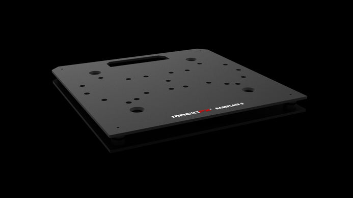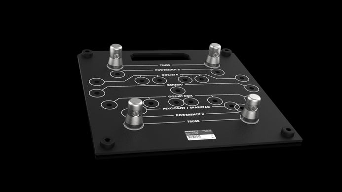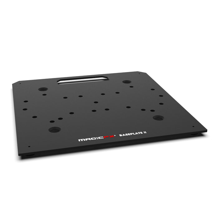 The MAGICFX Baseplate II is a heavy plate for mounting Sparxtars and several configurations of MAGICFX products . This product can be placed with its rubber foots on a stage and is equipped with four holes for mounting to a truss. Furthermore the BASEPLATE II has a handle for transportation. Fasteners for mounting MAGICFX products are included.